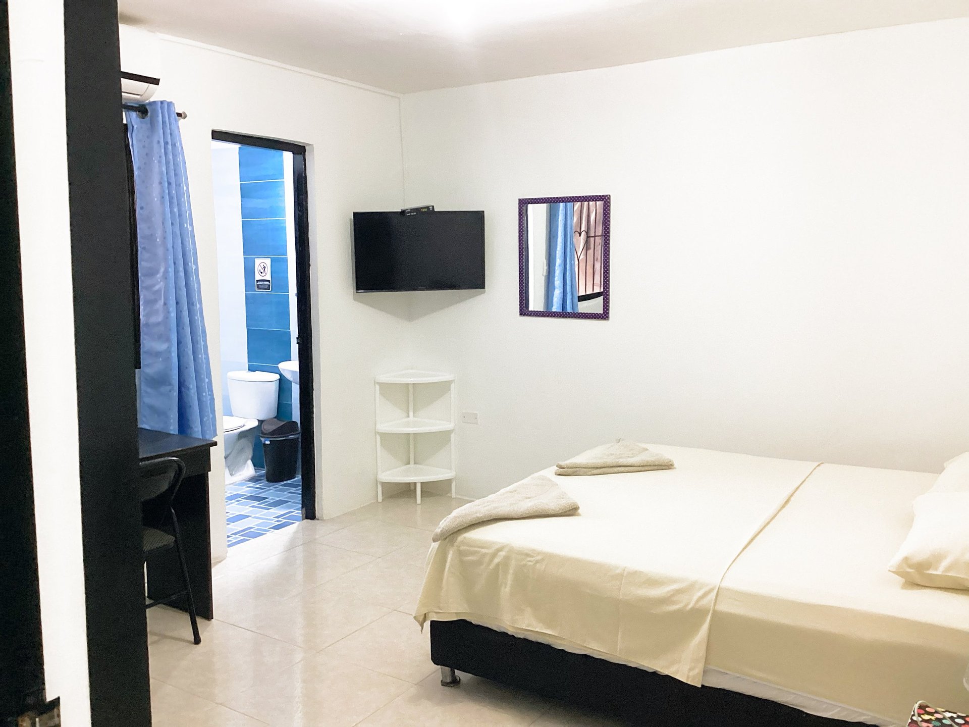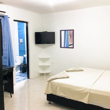 Cama Matrimonial, Baño Privado Completo, Aire Acondicionado, Smart TV de 32" con canales TDT, Netflix, Plancha de Ropa, Mesa para Planchar, Armario. Caja Fuerte.