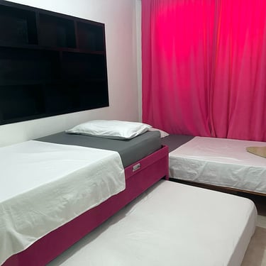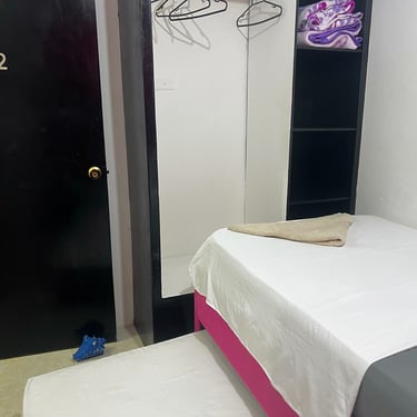 1 Cama individual, 1 Cama Individual tipo Nido que desprende de la parte inferior otra cama. Aire Acondicionado, Armario.