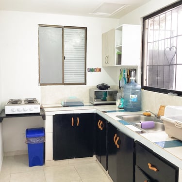 Cocina Equipada con Estufa a Gas 4 quemadores marca Haceb, Nevera Marca LG, Microonda, Sanduchera, Licuadora, Platos, Ollas, Utensilios